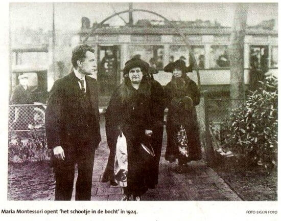 Het begon allemaal in 1925. Na een project van twee jaar werd het gebouw voor de jongste kinderen aan de Churchilllaan geopend door Maria Montessori, de Italiaanse arts die het Montessorionderwijs heeft bedacht. En je kon met de elektrische blauwe tram naar school komen, want die reed toen nog over de Churchilllaan!