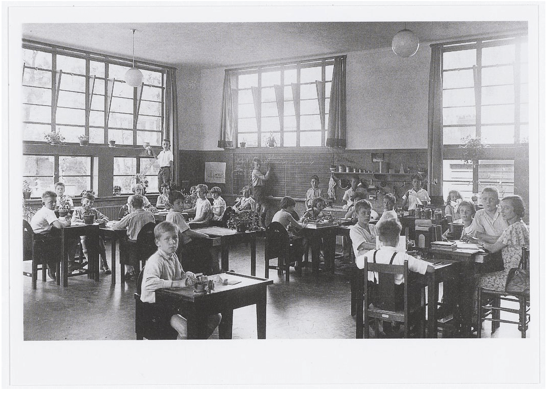 Wat hij slim had bedacht is om de drie klassen zo veel mogelijk op het Zuiden te richten, zodat er veel zon naar binnen kwam ‘hetgeen aan de ontwikkeling van het kind ten goede zou komen’.