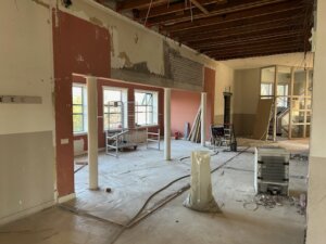 Aannemer Kernbouw laat er geen gras over groeien en heeft de gebouwen al ontdaan van alle plafonds en wanden die in het nieuwe ontwerp niet terugkomen.